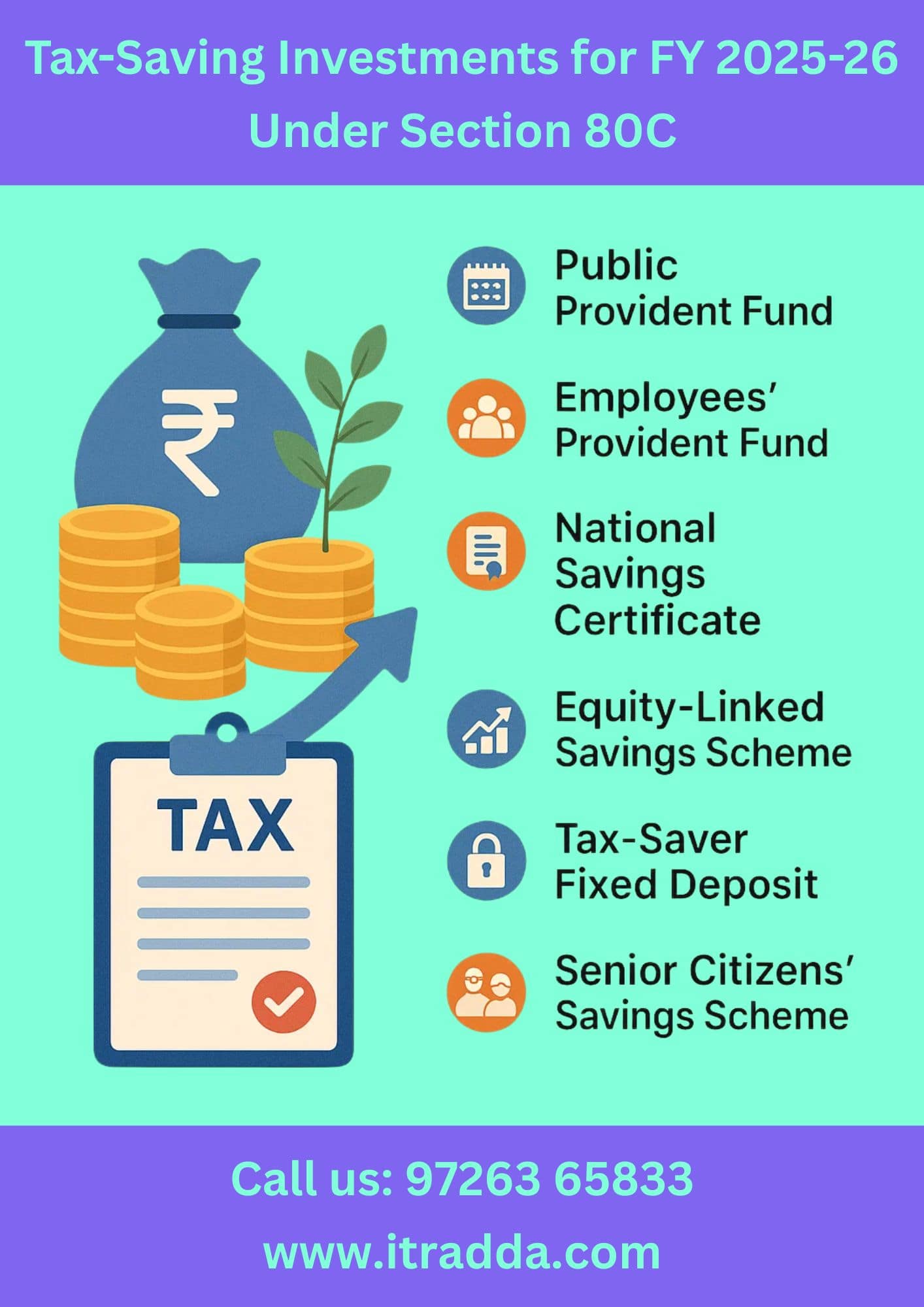 With expert support, you can avoid mistakes, utilize the full ₹1.5 lakh Section 80C deduction, and even combine it with other sections like 80D, 80E, and 80G to maximize tax savings. itradda.com provides reliable advice for salaried individuals, self-employed professionals, and small business owners, ensuring your tax planning is smooth and efficient. For guidance, visit itradda.com or call +91 97263 65833.
